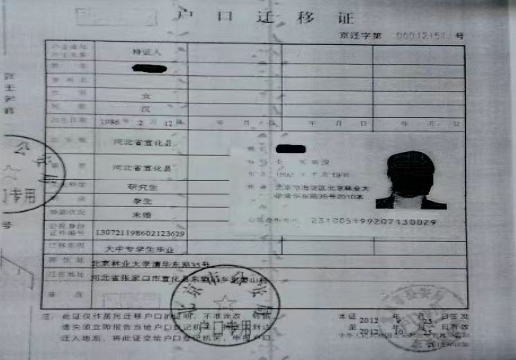 备注:户籍迁移证上的信息必须用铅笔标注,否则迁移证将作废。